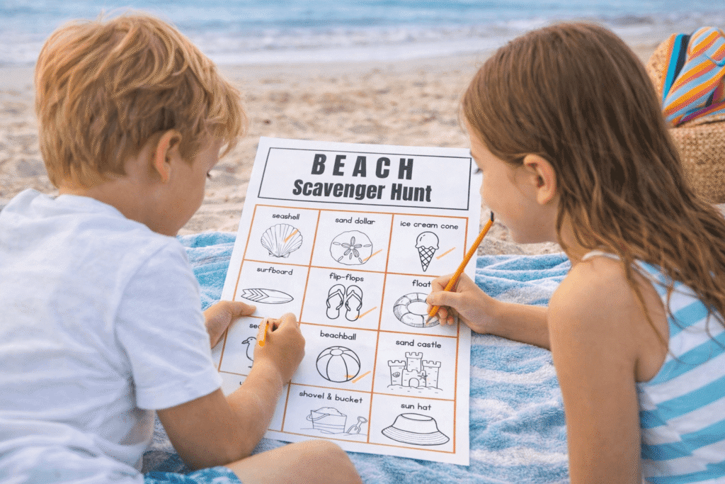 Minimal setup means you can start playing in seconds, leaving more time to enjoy the soft sand, sparkling water, and stunning sunsets. Lightweight activities like Beach Scavenger Hunt, I Spy, Friendly Feud, or Would You Rather let kids (and adults!) engage their creativity without dragging around bulky equipment.