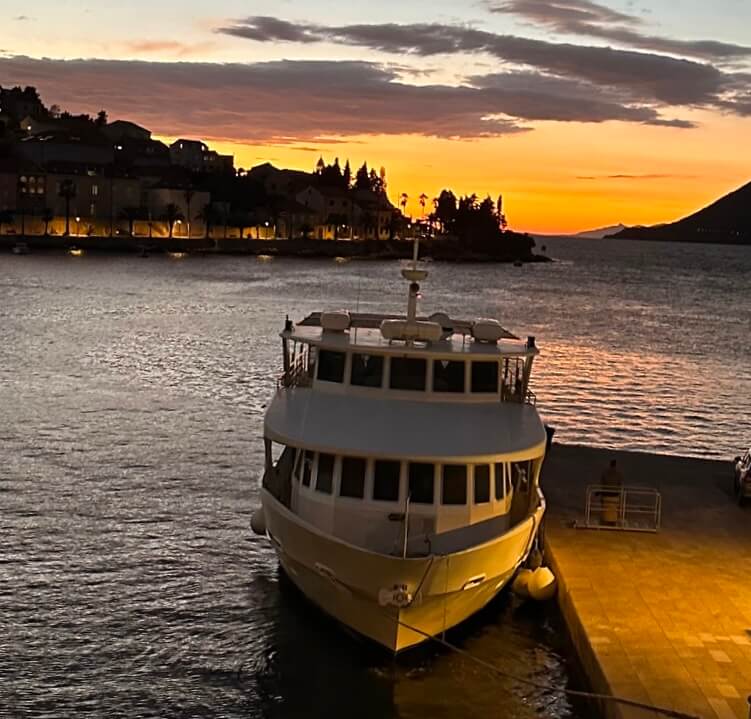 After lunch, I relaxed on the sunny deck with a refreshing frozen mojito, soaking in the Adriatic views as we approached the harbor. Once docked, we met our English-speaking guide for a walking tour before setting off to explore the island’s narrow stone streets, historic squares, and waterfront promenade.