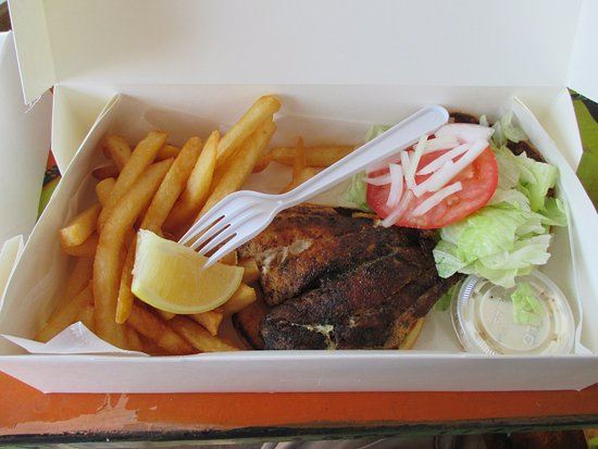 The fish sandwich at Island Time Bar & Grill is a true island favorite. They serve it blackened, seasoned, or fried and served on a soft brioche roll with crisp lettuce, tomato, red onion, and house tartar sauce. Each sandwich comes with your choice of seasoned fries, pineapple slaw, macaroni salad, or yellow rice and beans.