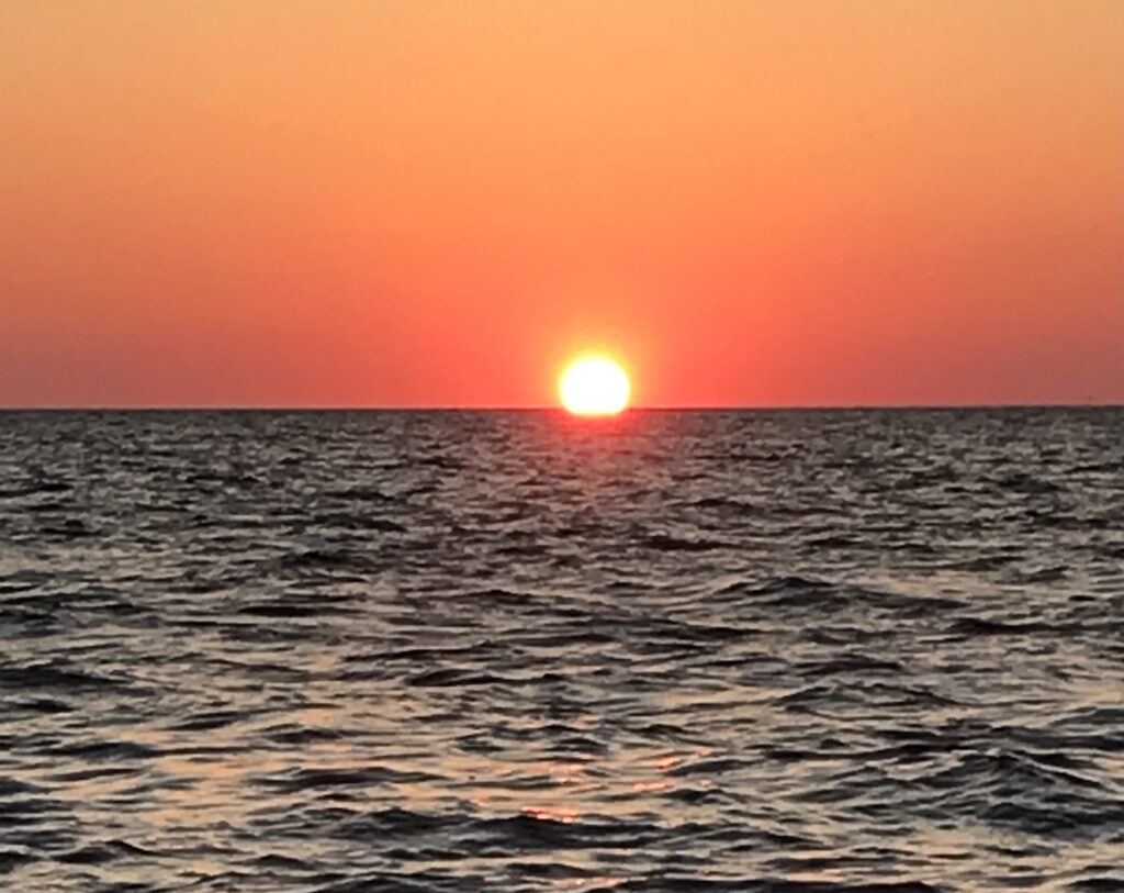 Golden hour magic from the water Watching the sun dip below the Gulf near Bean Point.