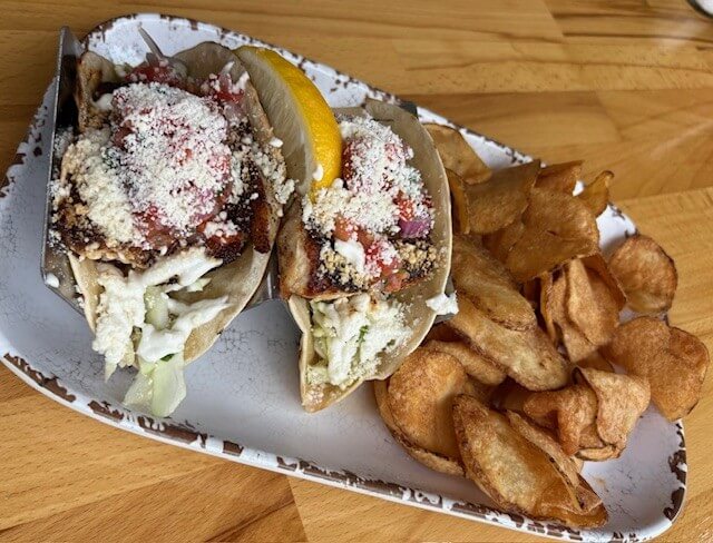 The Bridge Tender serves Fish Tacos that are both flavorful and satisfying. Each taco is filled with lightly blackened mahi, perfectly complemented by cheese and crisp coleslaw. Finished with a sesame garlic glaze, these tacos deliver a delicious blend of fresh, savory, and slightly sweet flavors.